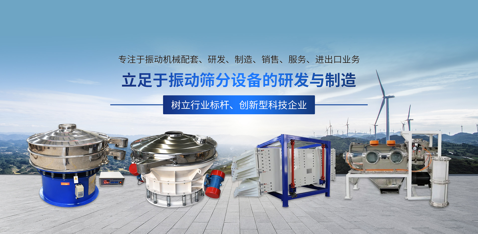 我公司生產振動篩/震動篩、超聲波振動篩,超聲波振動篩、精密搖擺篩、檢驗篩(粒度分析篩)、氣流篩、氣旋篩、直線振動篩、450過濾篩、高頻震動篩、等設備。是一家集研發、生產、銷售、售后為一體的綜合性企業。